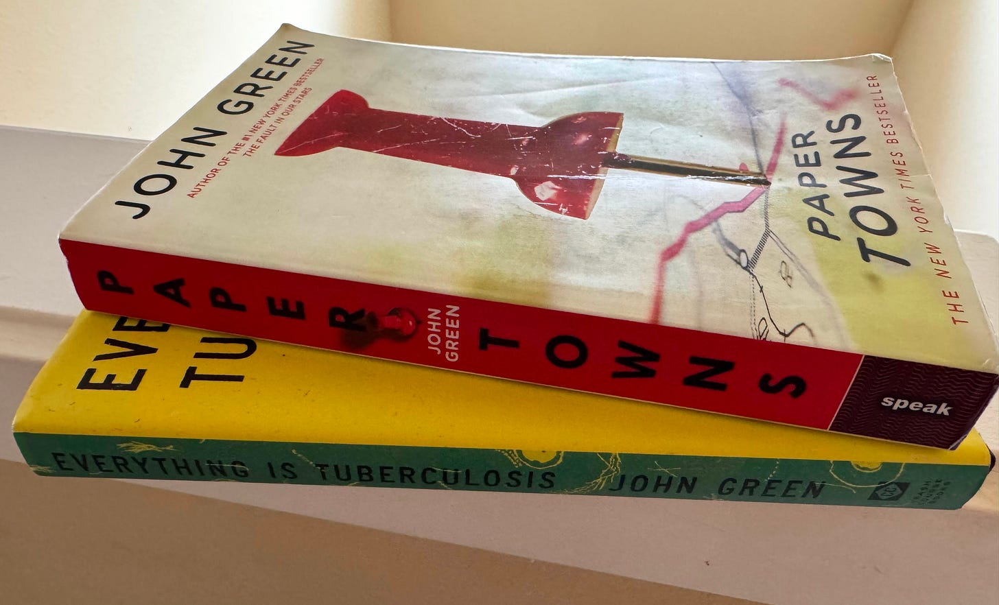 I’ve read everything John Green has ever published, from LOOKING FOR ALASKA in 2005 to EVERYTHING IS TUBERCULOSIS, which I’m currently reading. PAPER TOWNS came out in 2008. That’s probably the last time I read it.